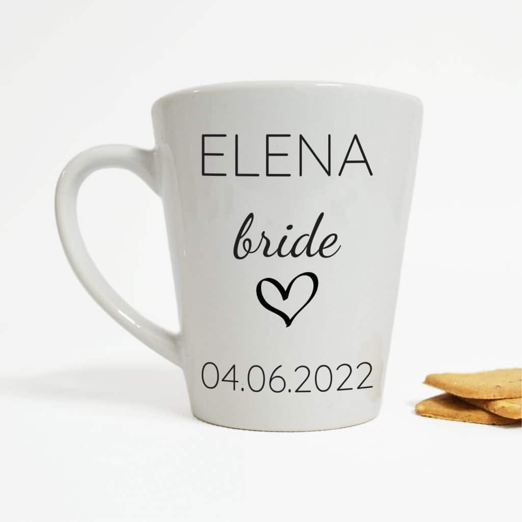 Personalised Latte Mug – Name and Date Bride with Heart