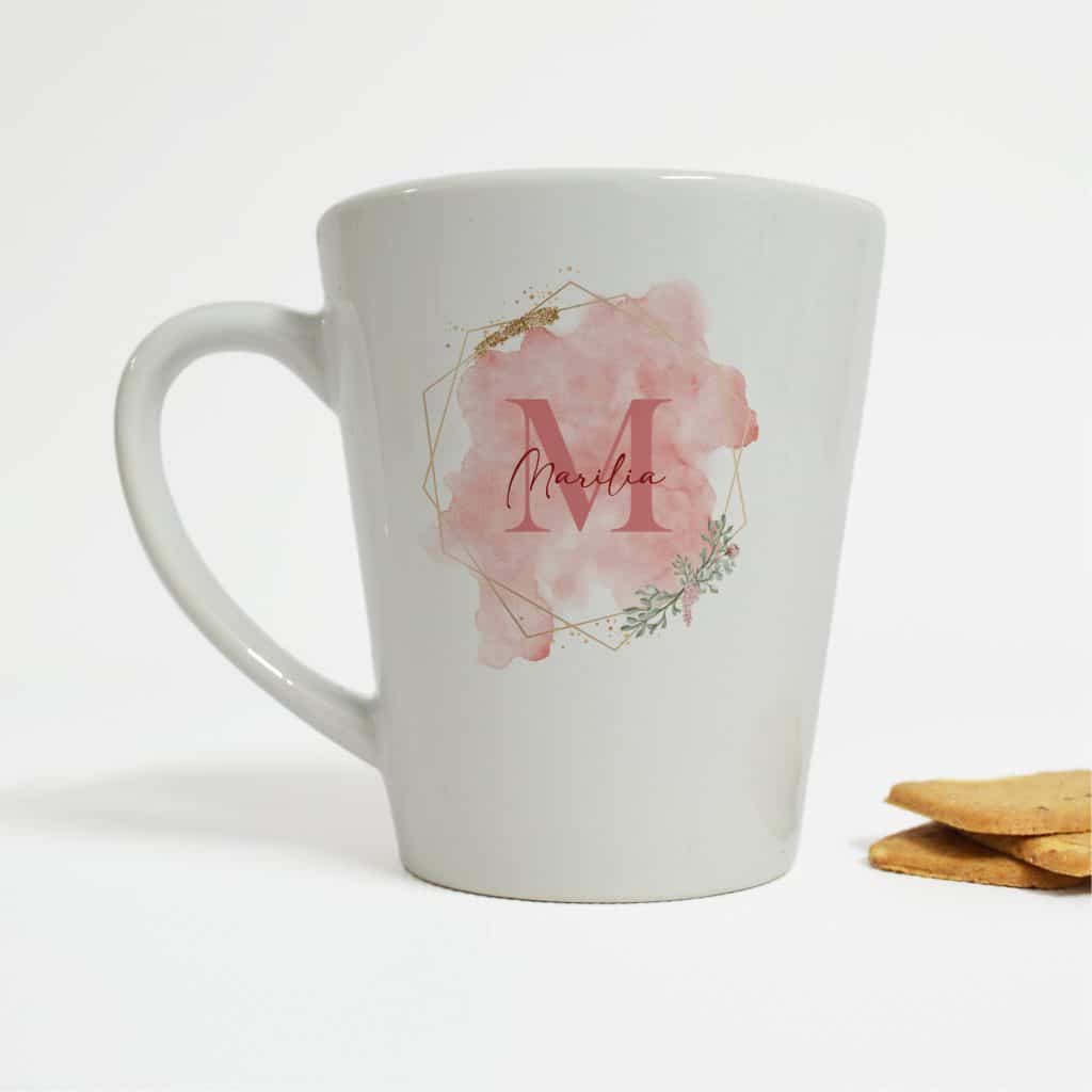 Personalised Latte Mug- Geometric Watercolor Initial and Name