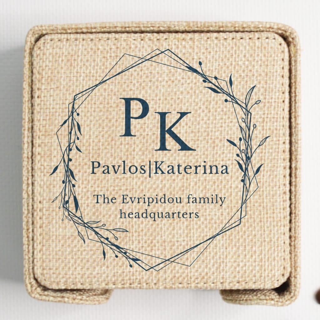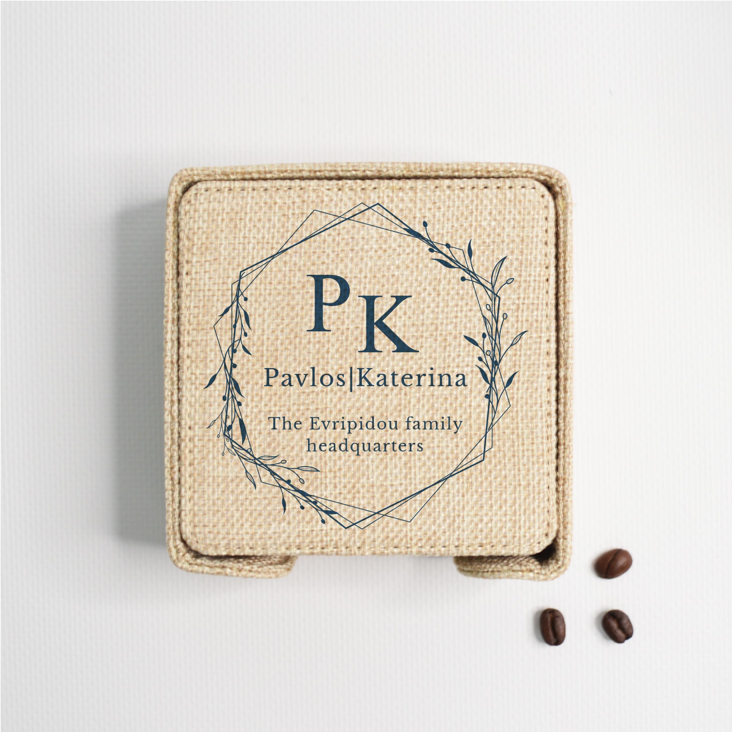 COASTER (BURLAP) SQUARE (set of 6pcs & Holder) 10x10cm