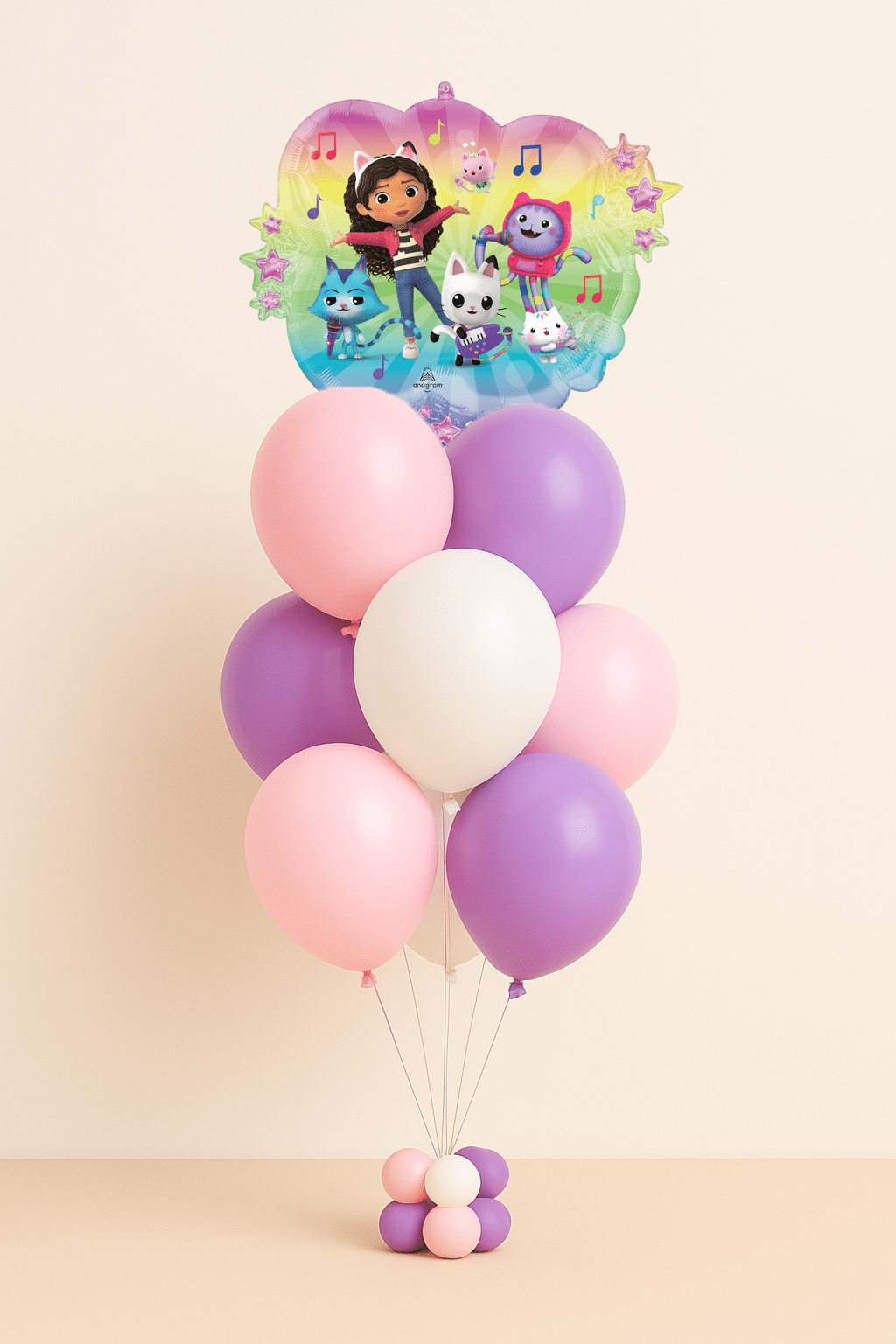 Large Gabby’s Dollhouse foil balloon with rainbow and music design