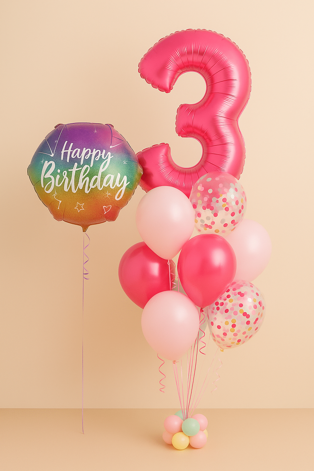 Make their third birthday extra special with a burst of pinks and a fun rainbow-themed foil balloon.