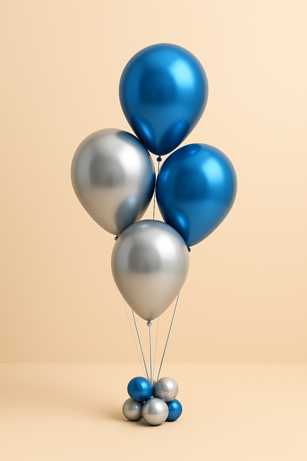 Celebrate with a stunning blue and silver balloon arrangement that brings a sophisticated touch to any celebration.