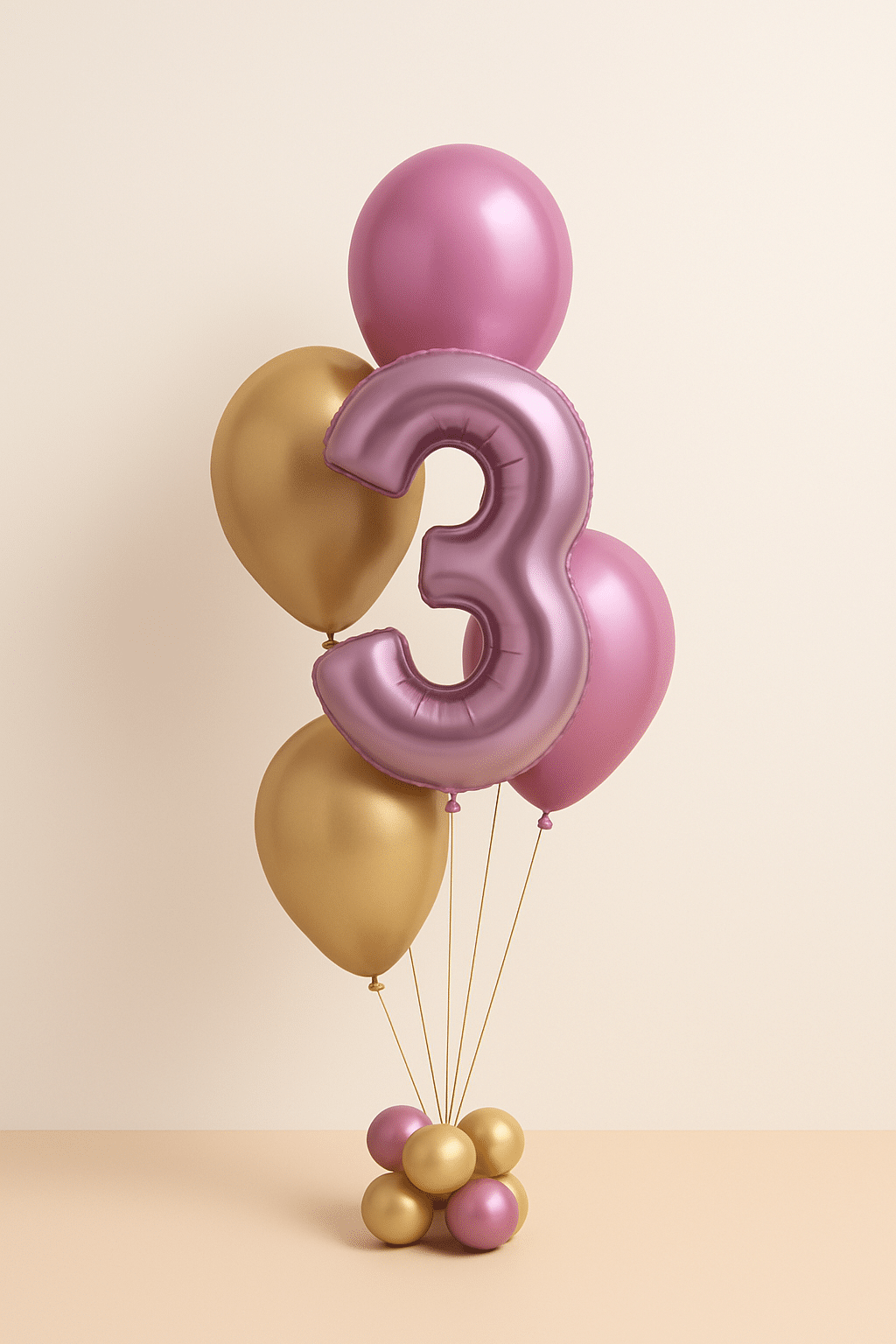 1 large, pink foil balloon shaped as the number “3”