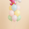 7 latex balloons in pastel pink, yellow, green, and blue