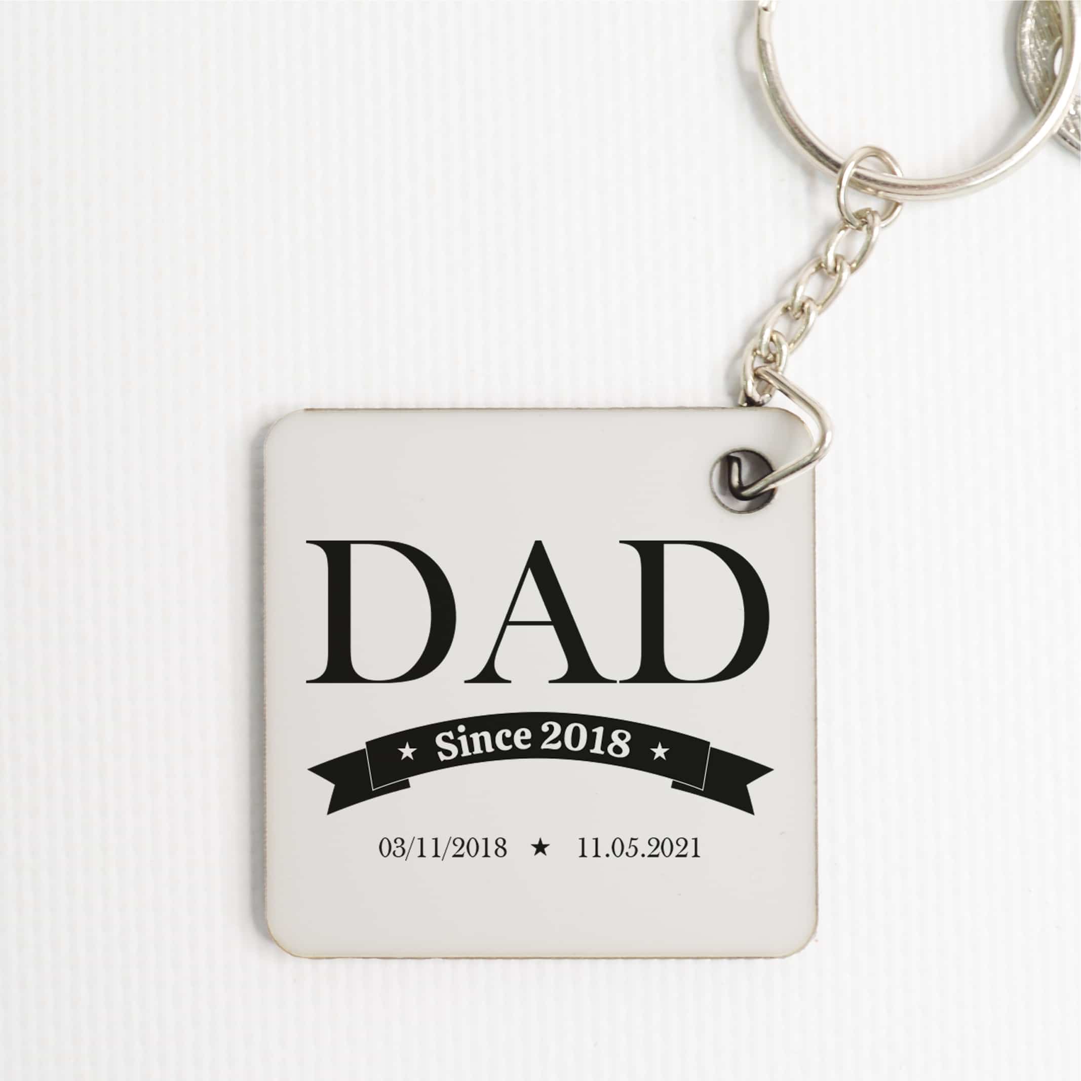 This keychain features the word “dad” and a personalised date section elegantly printed on both sides, making it a thoughtful keepsake that will remind him of your love and appreciation every day. With its two-sided printing, this keyring is not only stylish but also durable, ensuring it will withstand the test of time.