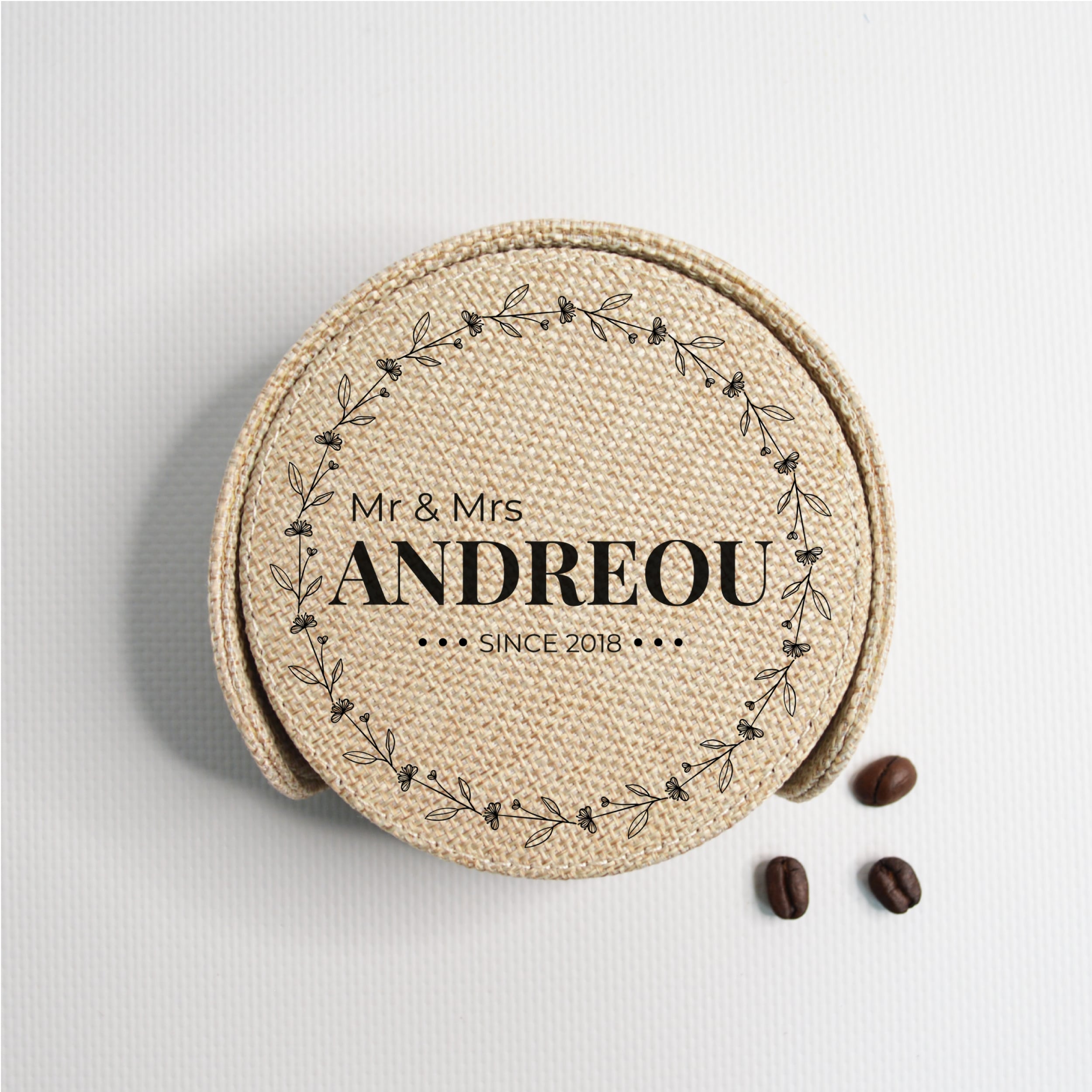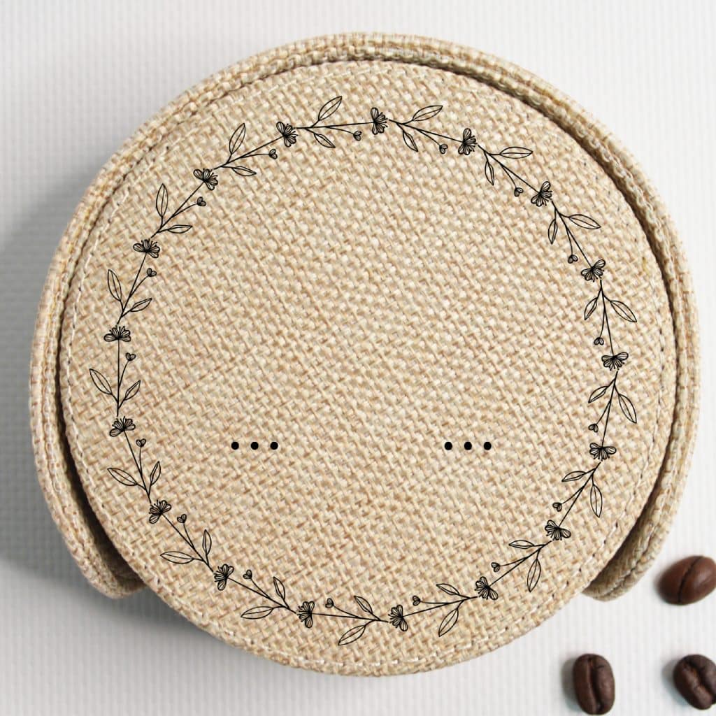 COASTER (BURLAP) ROUND (set of 6pcs & Holder) 10cm