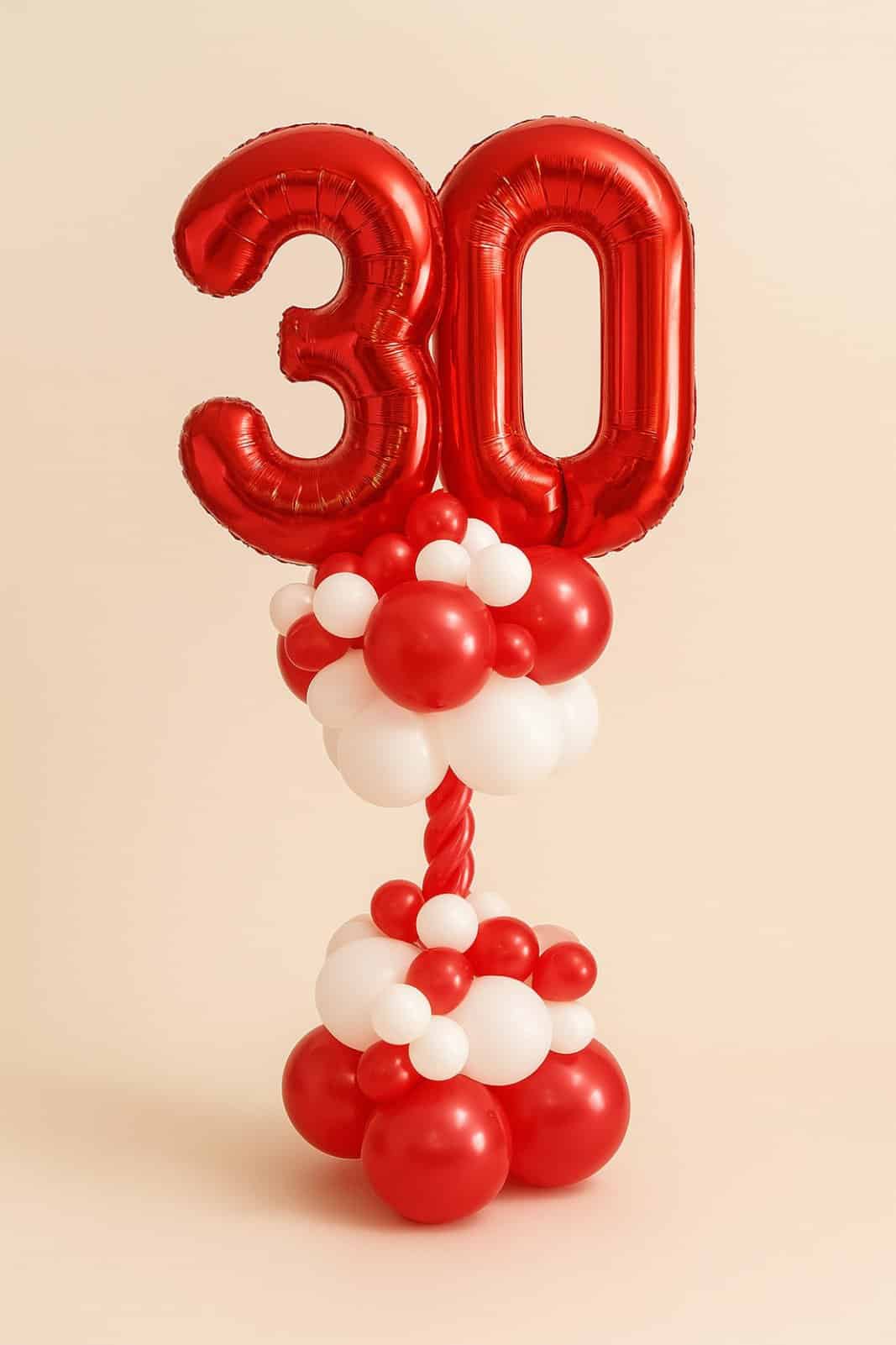 2 oversized foil number balloons in striking red
