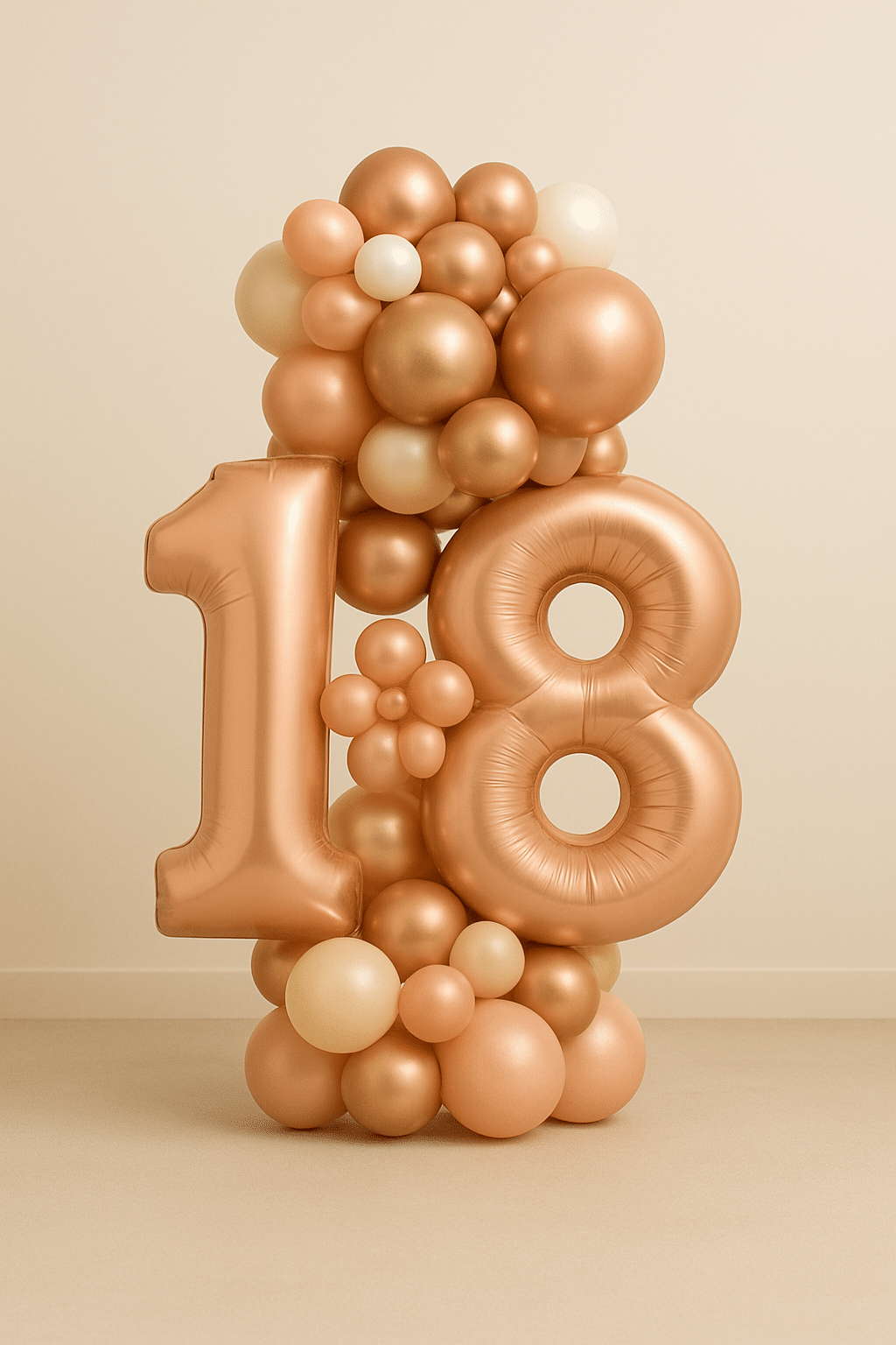 Balloon base in chrome rose gold, metallic gold, and creamy ivory hues