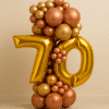 Metallic balloon clusters in shades of satin bronze, warm gold, and matte copper