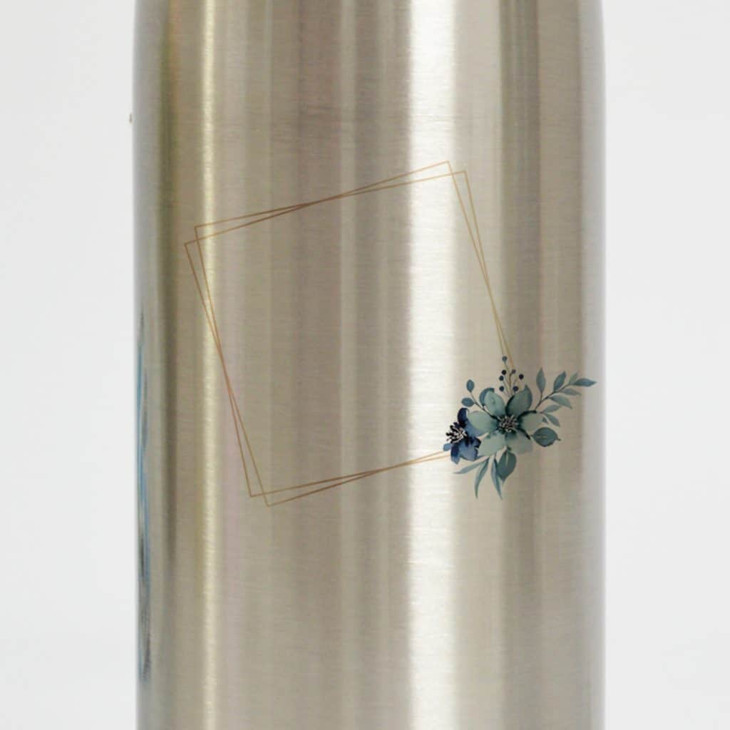 Personalised Bowling Bottle – Blue Floral Design with Initial