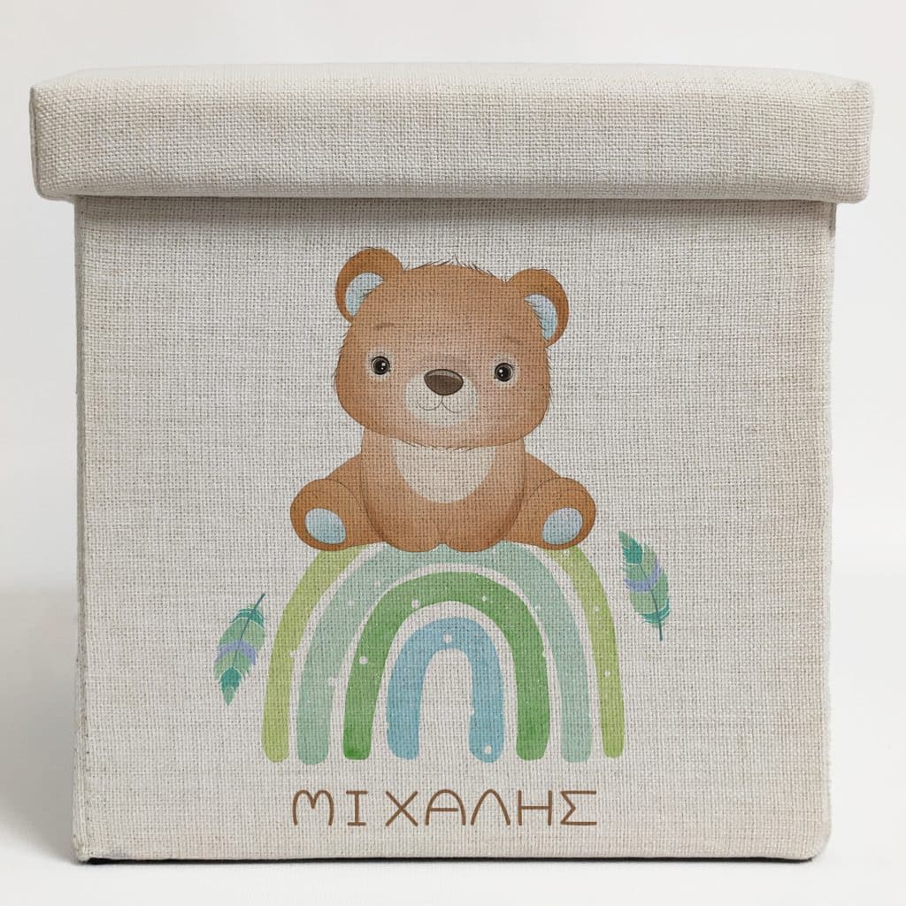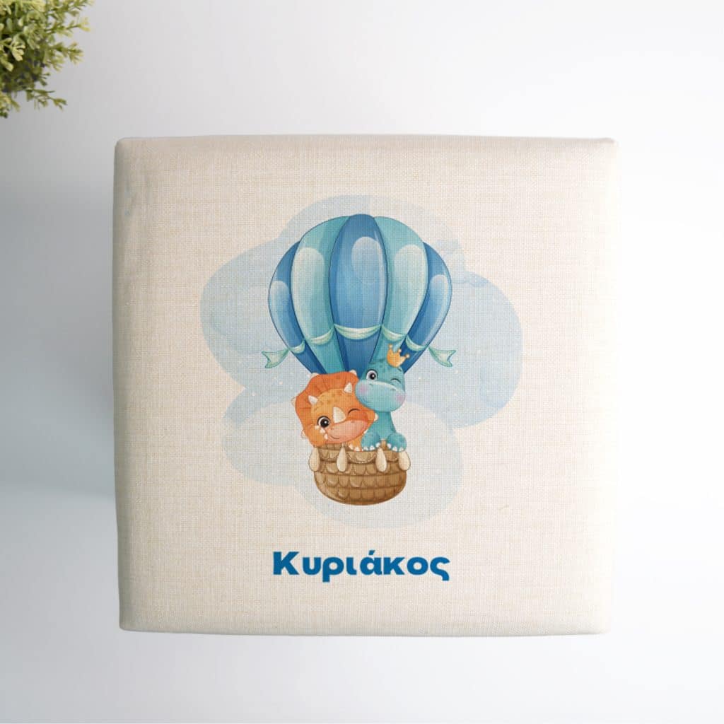 Personalised Storage Stool- Dinos in Hot Air Balloon with Name and Date