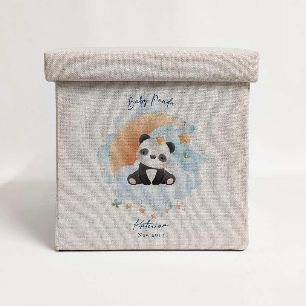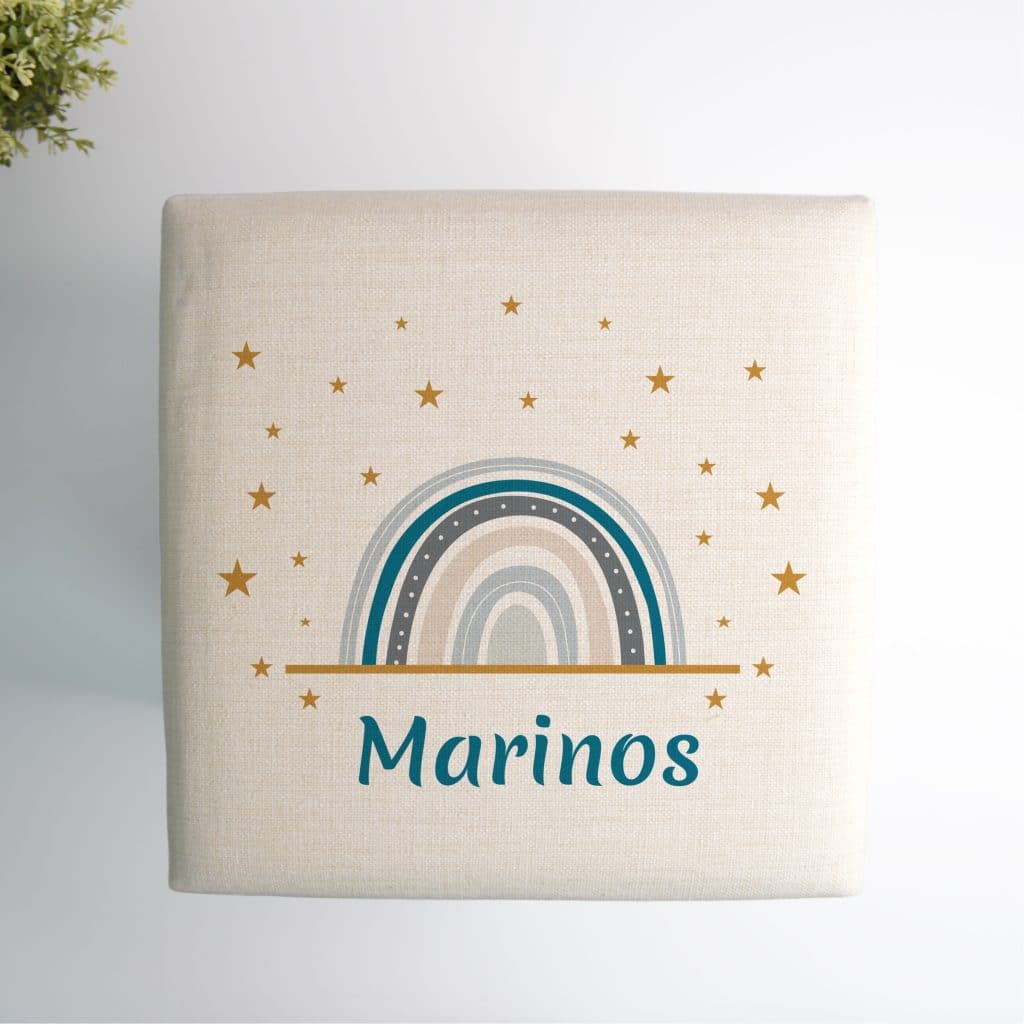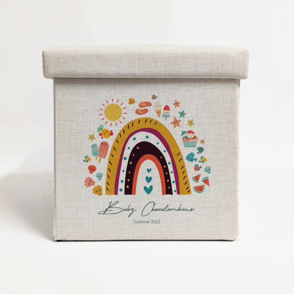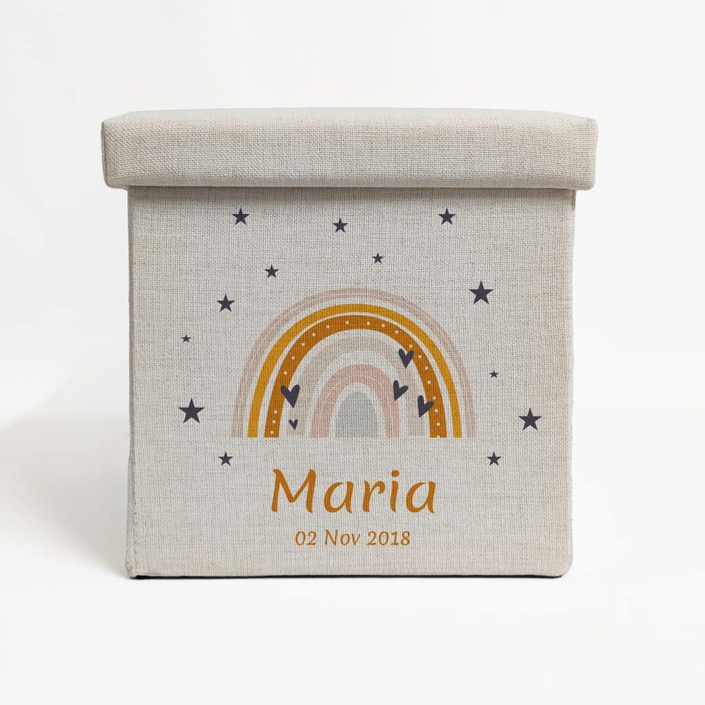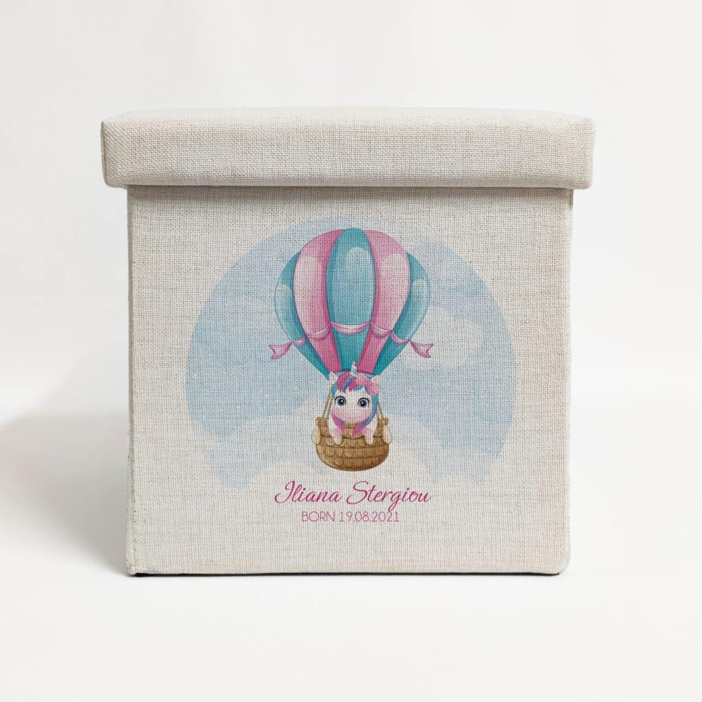 Personalised Storage Stool- Unicorn in Hot Air Balloon with Name and Date