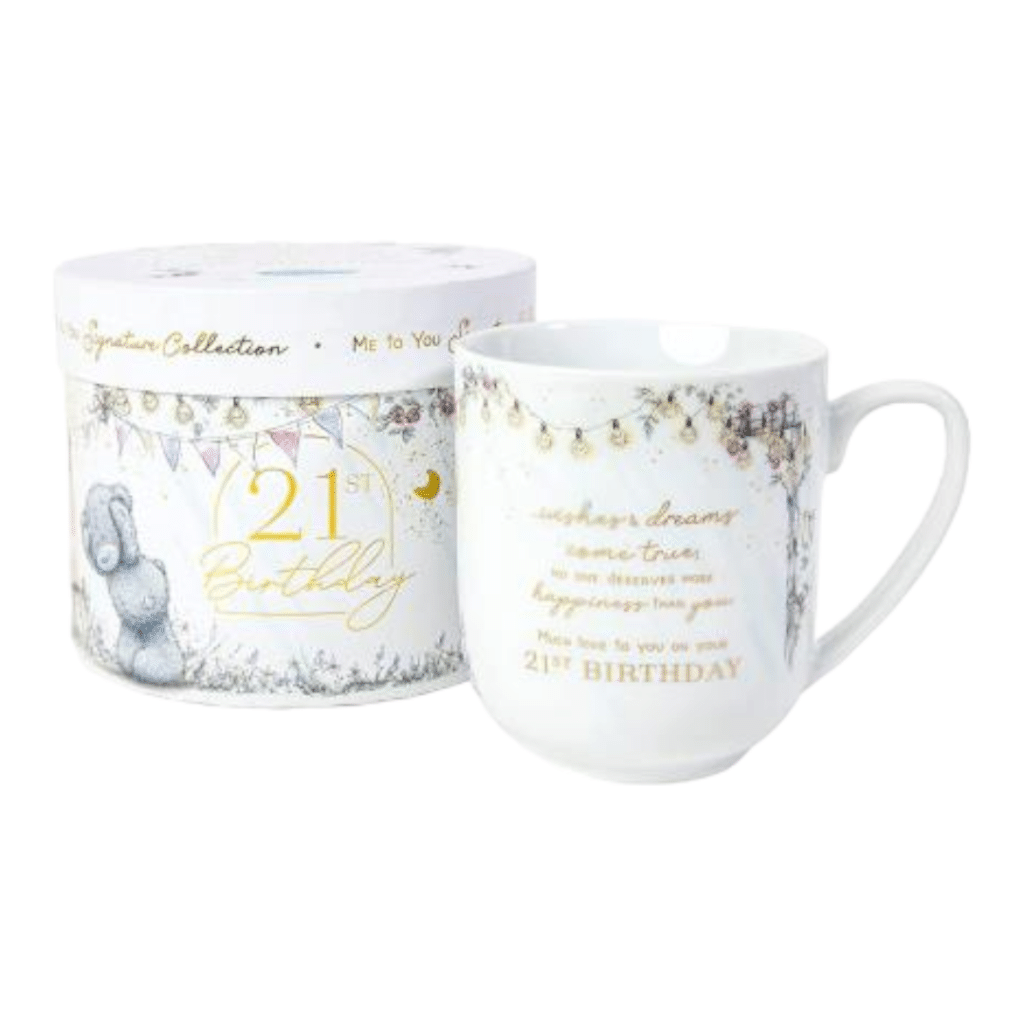 The number 21 is printed in gold lettering on both the mug and the box, making this a perfect gift to help someone special celebrate their milestone birthday.
