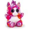 This enchanting plush toy features a vibrant pink and purple mane, adding a touch of whimsy to its appearance.