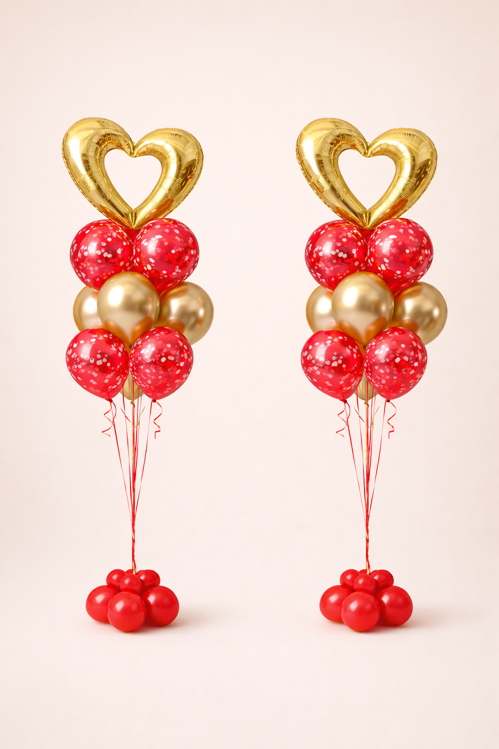 Balloon clusters in red and metallic gold latex balloons