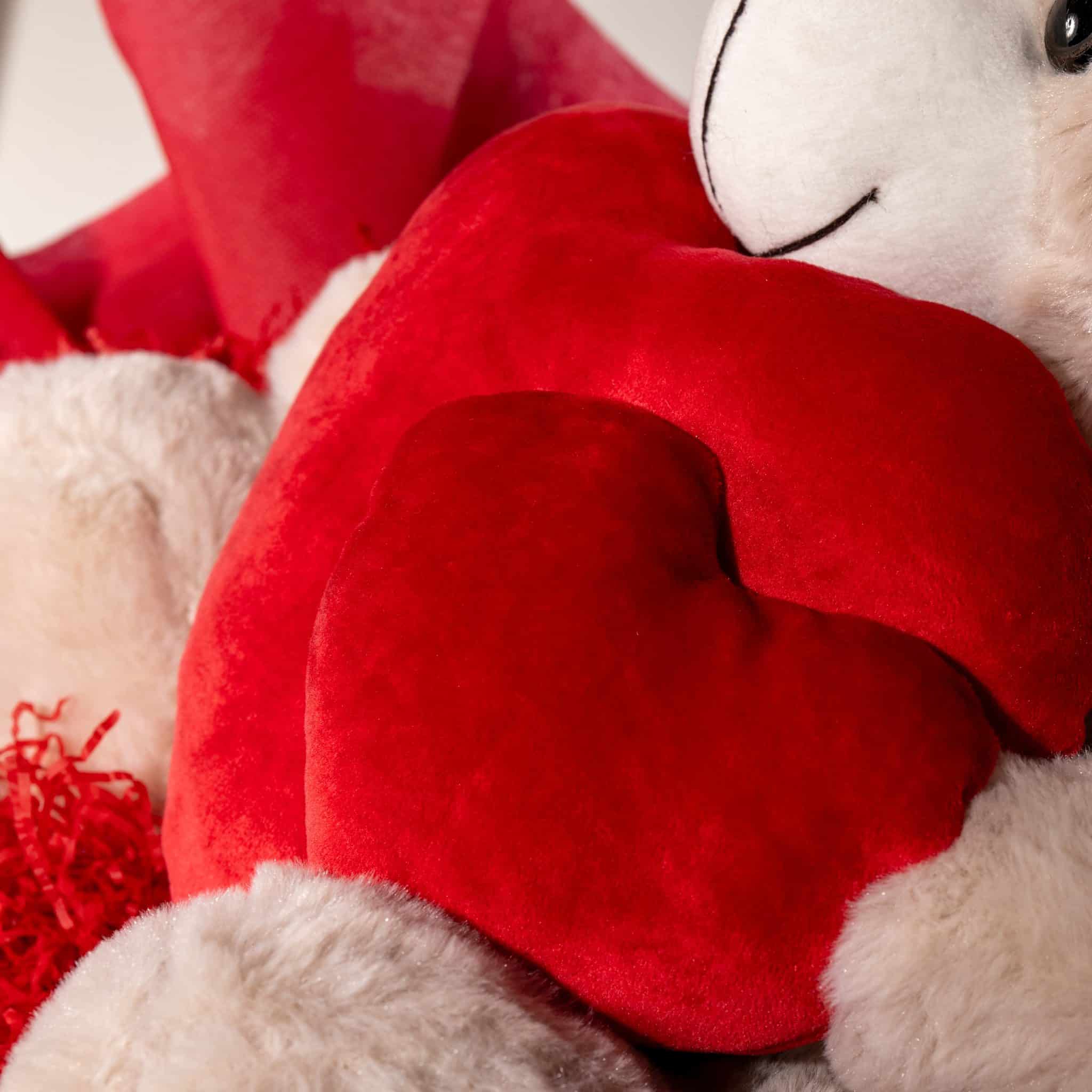 Plush teddy bear holding a red heart