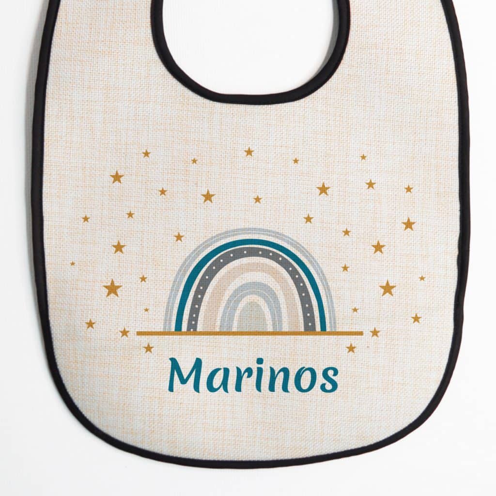 Adorned with a vibrant rainbow and fluffy clouds, this bib adds a touch of whimsy to any outfit.