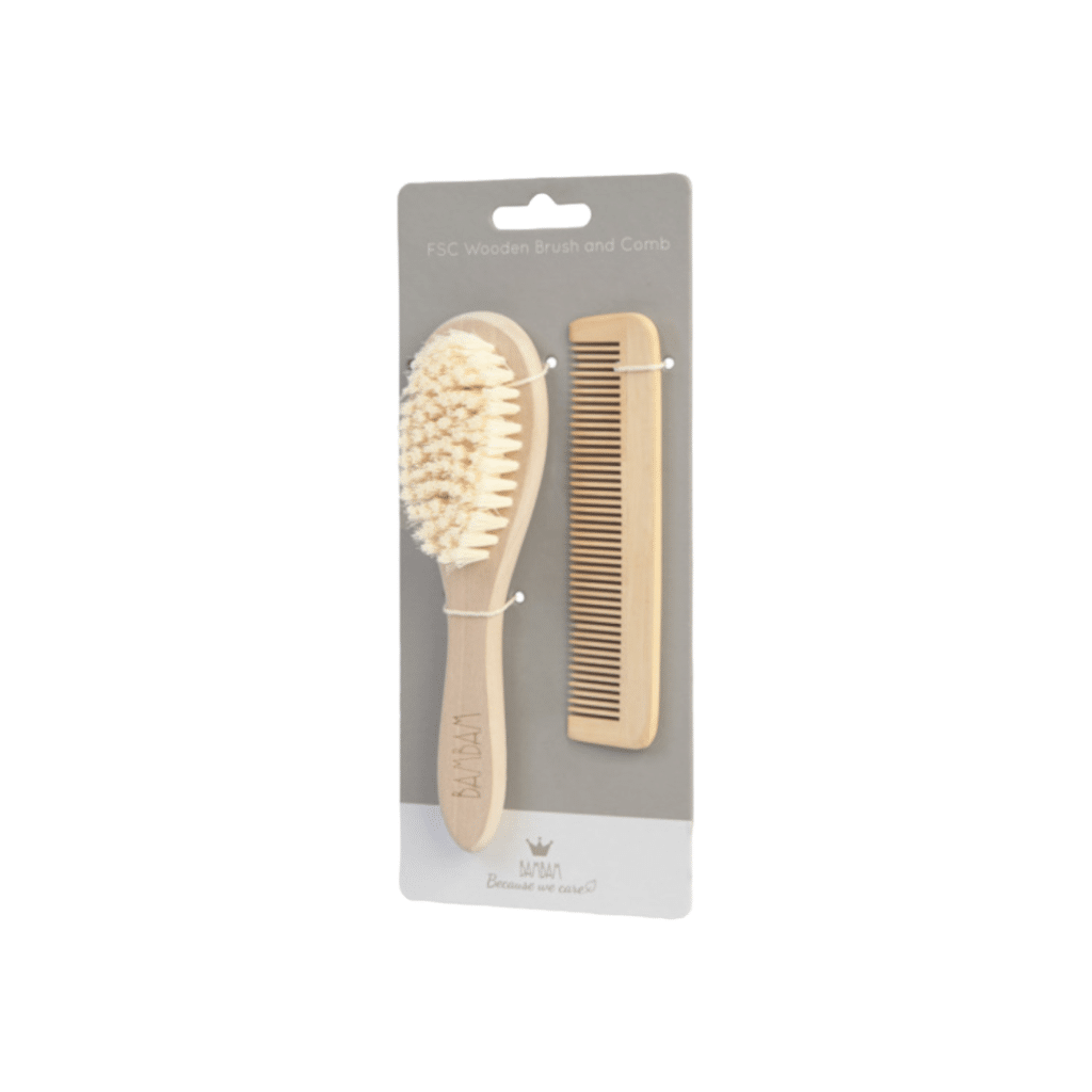 Gift set with a wooden brush and comb.