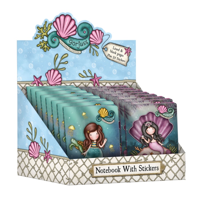 - Display box containing 16 Mini Notebooks with Stickers, 8 each of 2 designs