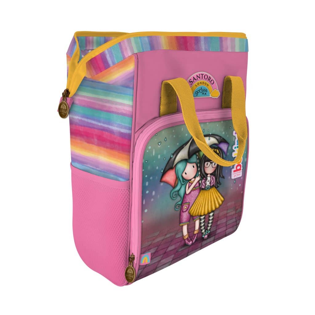 This Gorjuss Be Kind Rucksack features a frame mechanism for easy access, a zipped front pocket, an internal pocket and two water bottle pockets.