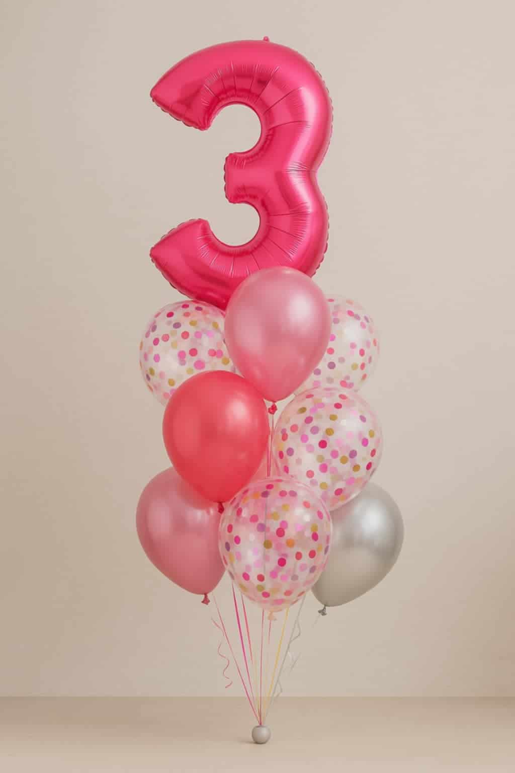 1 large pink foil balloon in the shape of the number 3