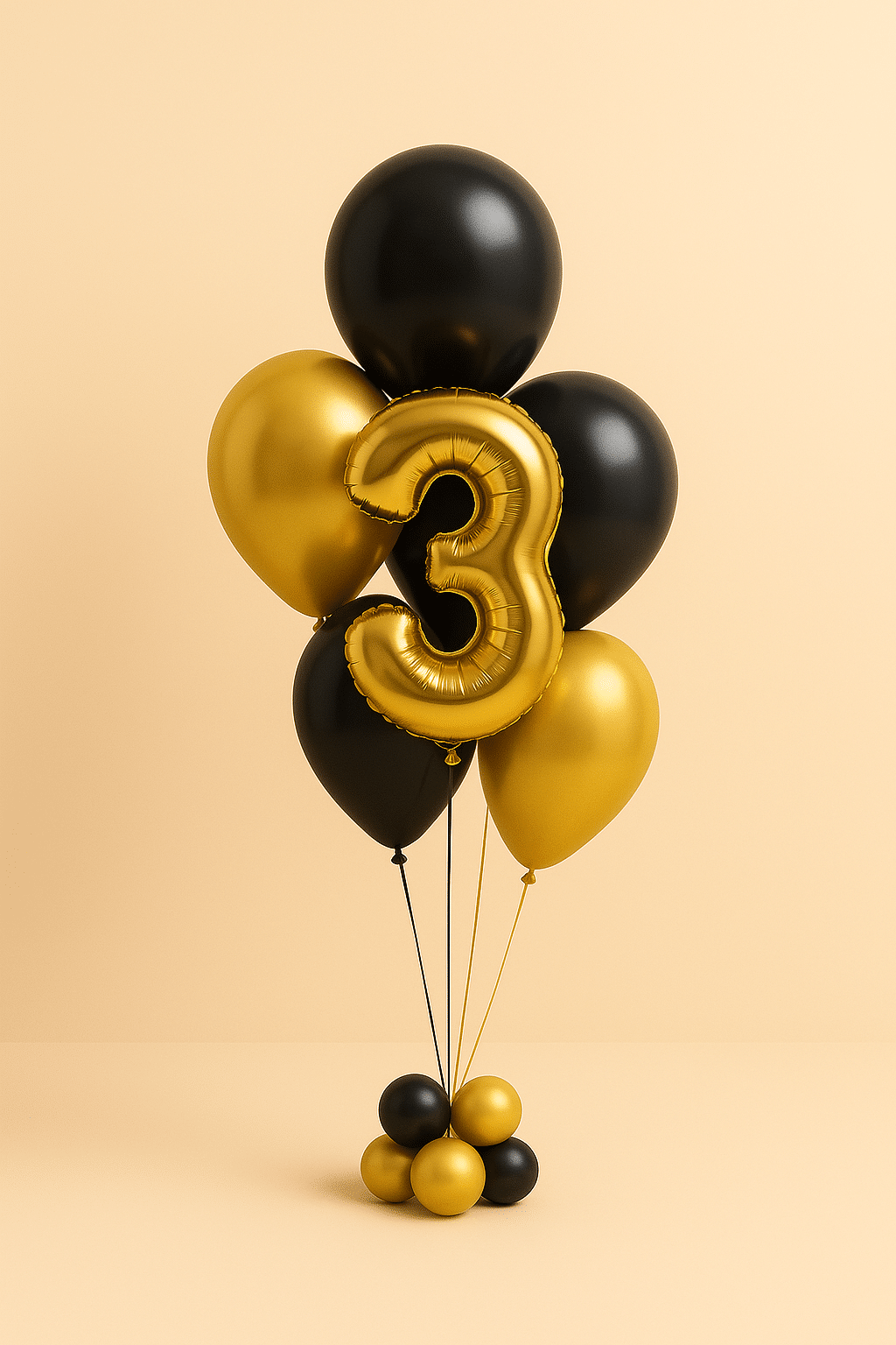 1 large, gold foil balloon shaped as the number “3”