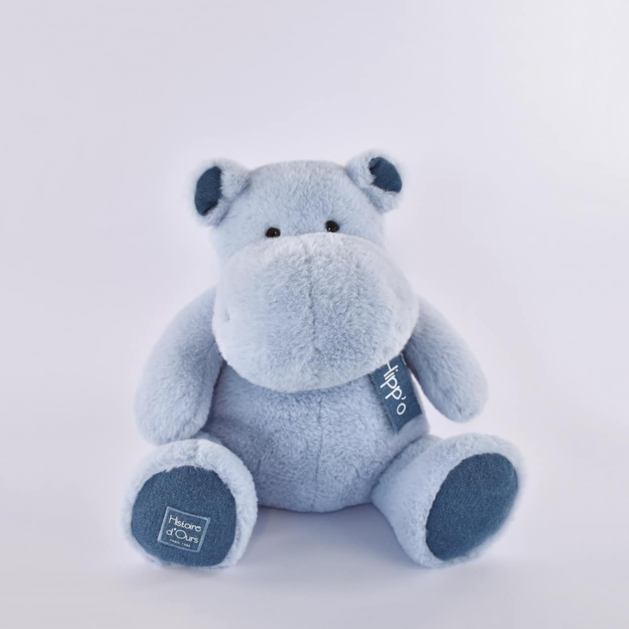 Plush hippopotamus toy with soft textures and fun colors.