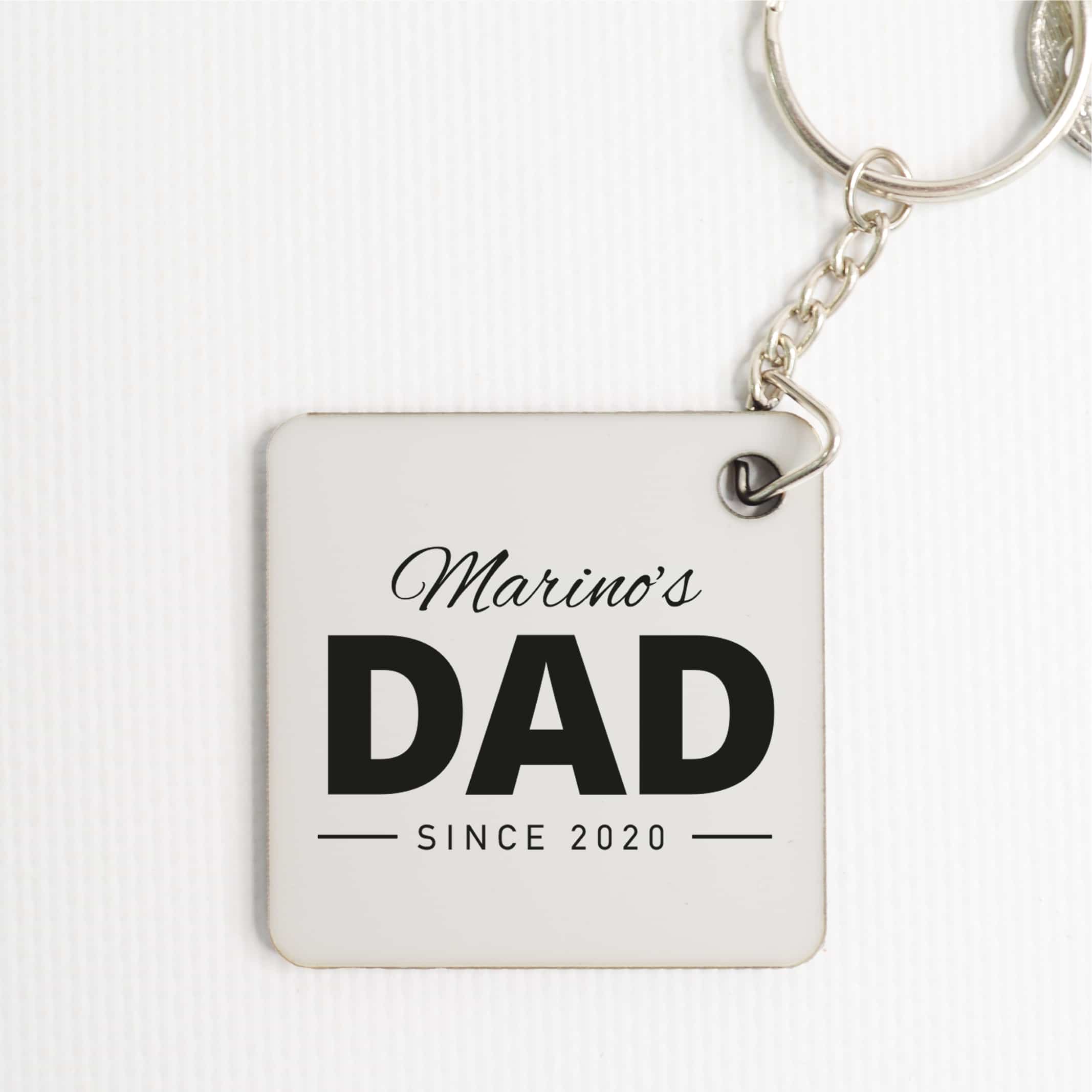 This keychain features the word “dad” , and can be personalised with a name and date, elegantly printed on both sides, making it a thoughtful keepsake that will remind him of your love and appreciation every day.