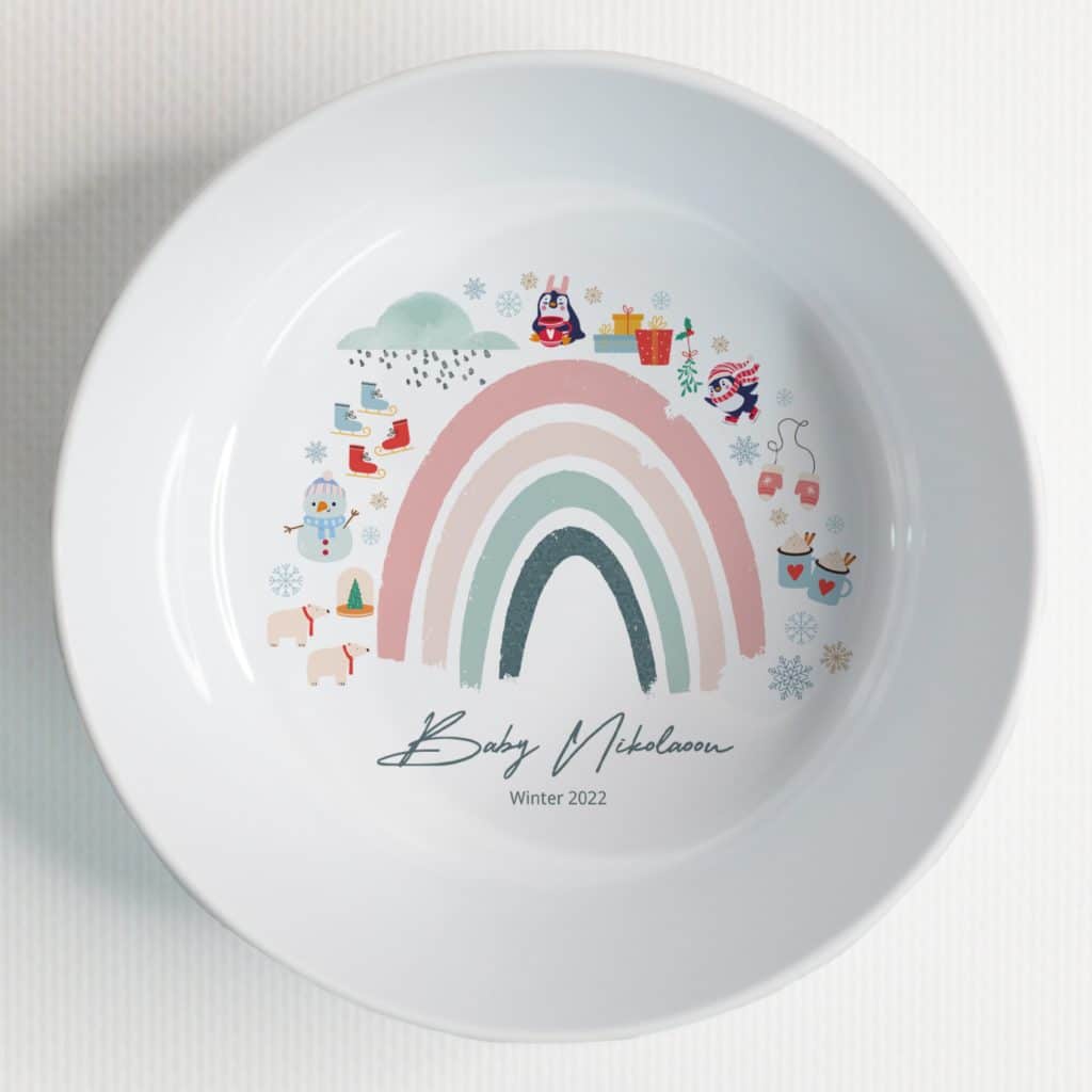Whether you’re looking for a thoughtful gift or a unique addition to your own baby’s collection, our Personalised Baby Rainbow Bowl is sure to bring joy and smiles to every meal.