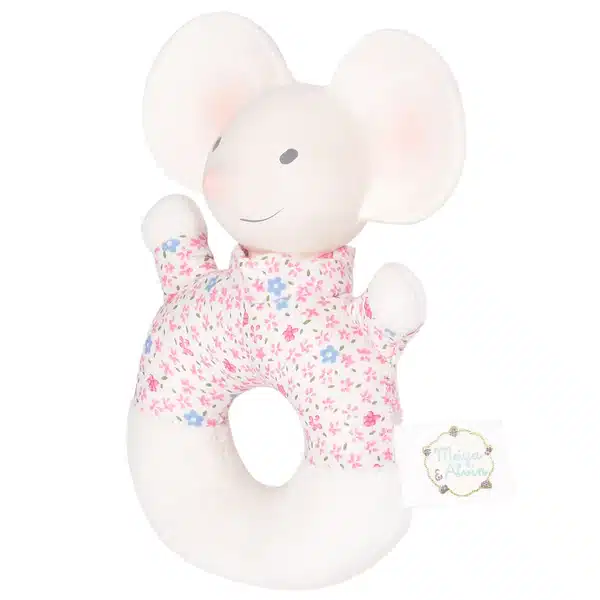 Its easy-to-grip fabric ring helps develop baby’s grasp.