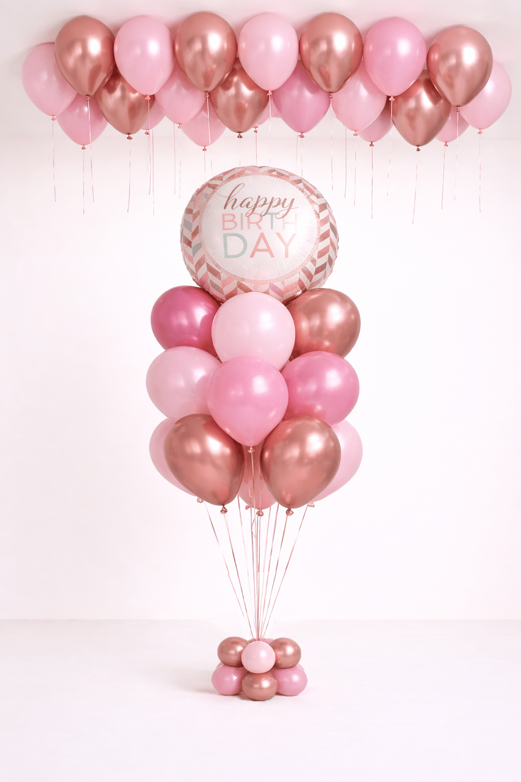 Rose Gold Birthday Balloon Set – Blush & Chrome Ceiling Celebration