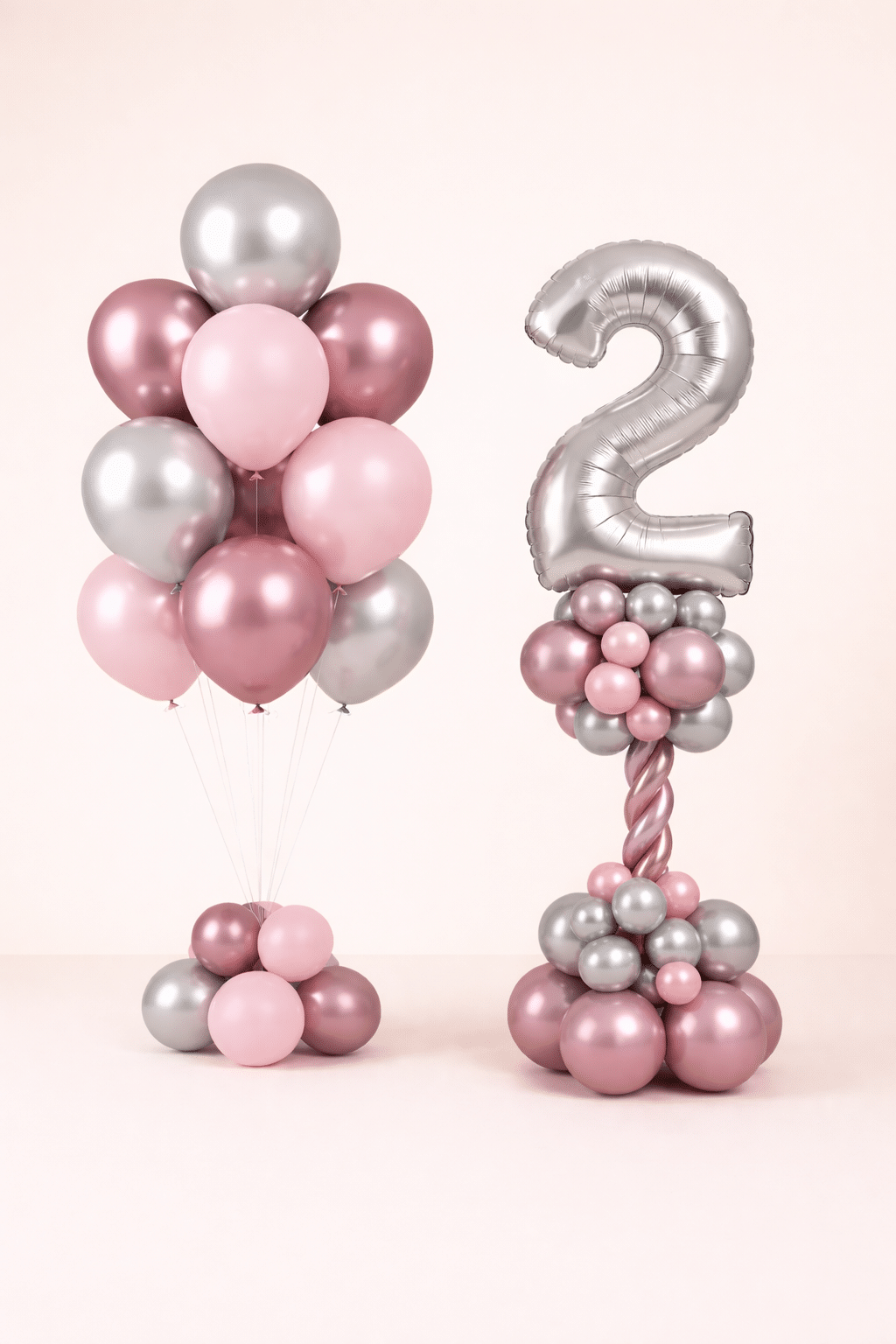 Blush & Silver Birthday Balloon Duo – Elegant Chrome Celebration Set